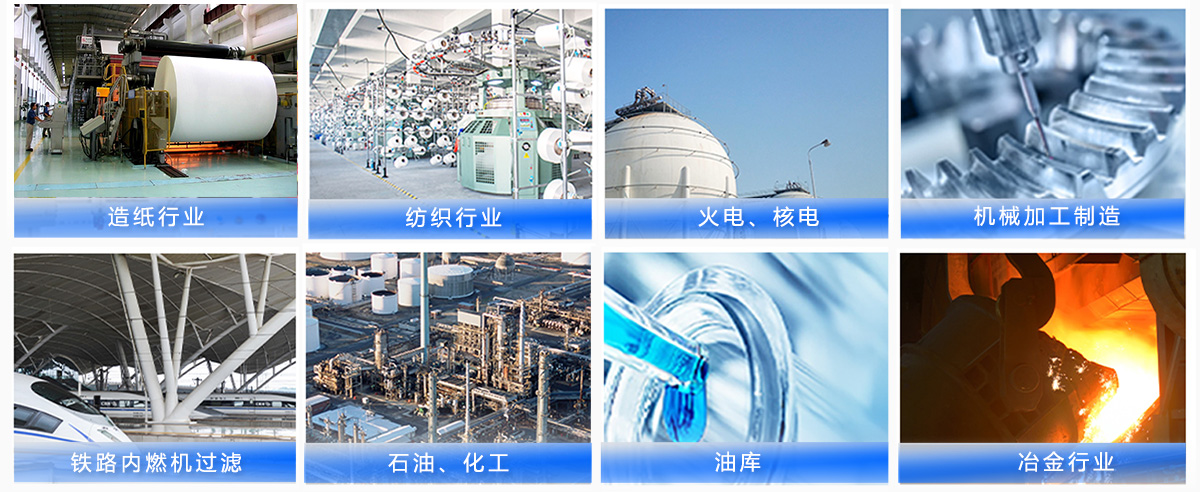 1、冶金:用于軋鋼機、連鑄機液壓系統(tǒng)的過濾及各種潤滑設(shè)備的過濾。